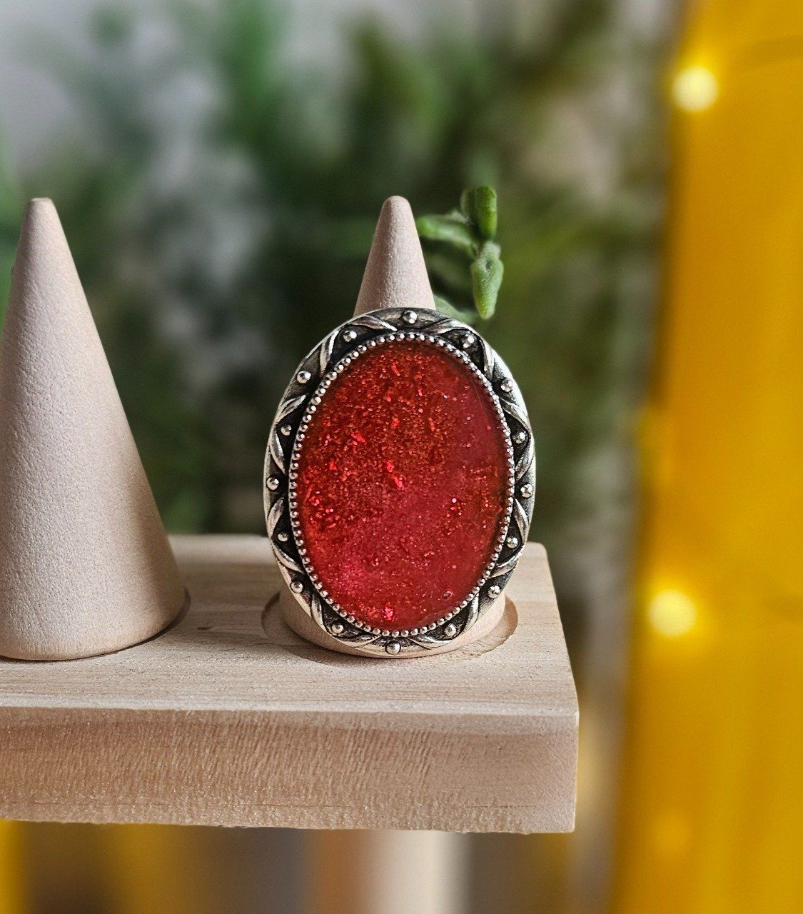 Bague reglable avec décoration en résine UV