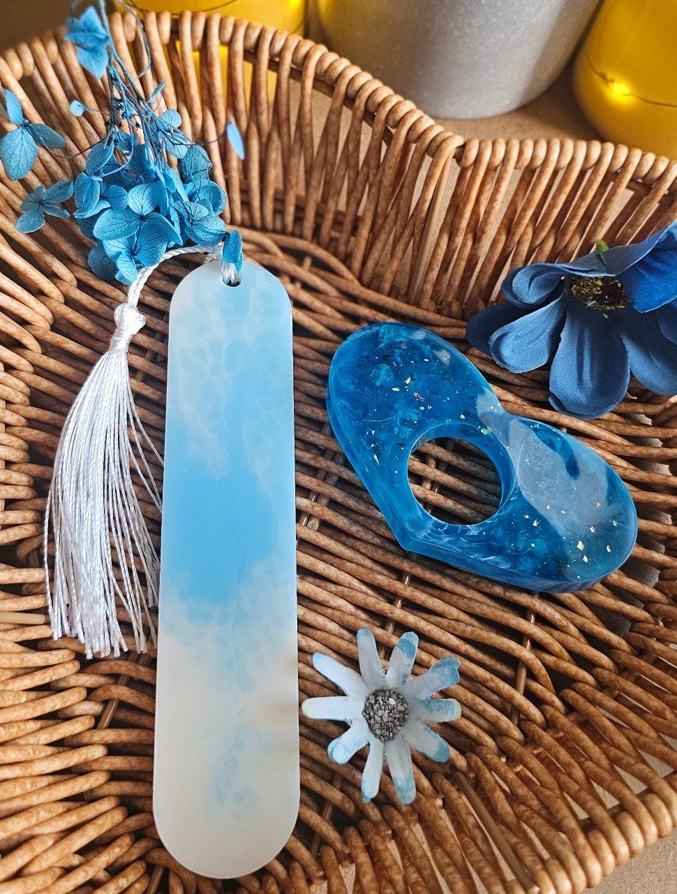 Ensemble de lecture en résine époxy avec un marque page et une bague de lecture